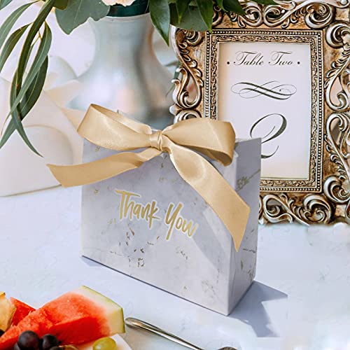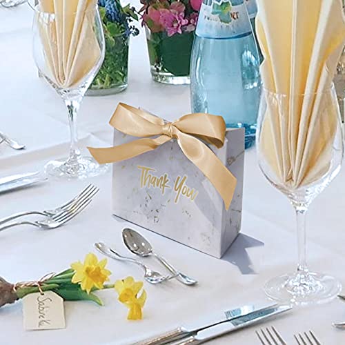 ampusanal Bruiloft Gift Bags, Candy Boxes Gray Marble Wedding Paper Chocolate Boxes, Golden Thank you Shiny Foil Designs…