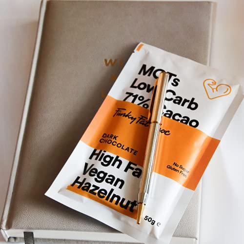 Specification: Funky Fat Foods, Suiker-Vrij, Vegan, Biologisch Pure Chocolade met Hazelnoot 10 repen 50g